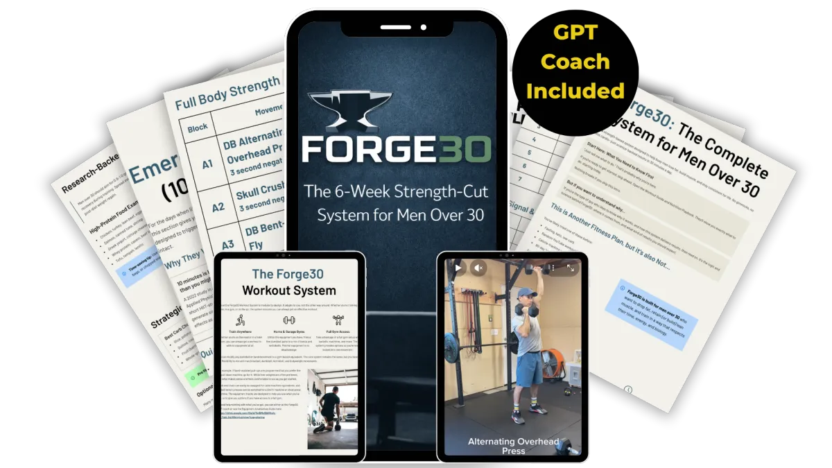 The Forge30 Workout System: A complete rep-by-rep strength-focused training protocol with clear progression.
